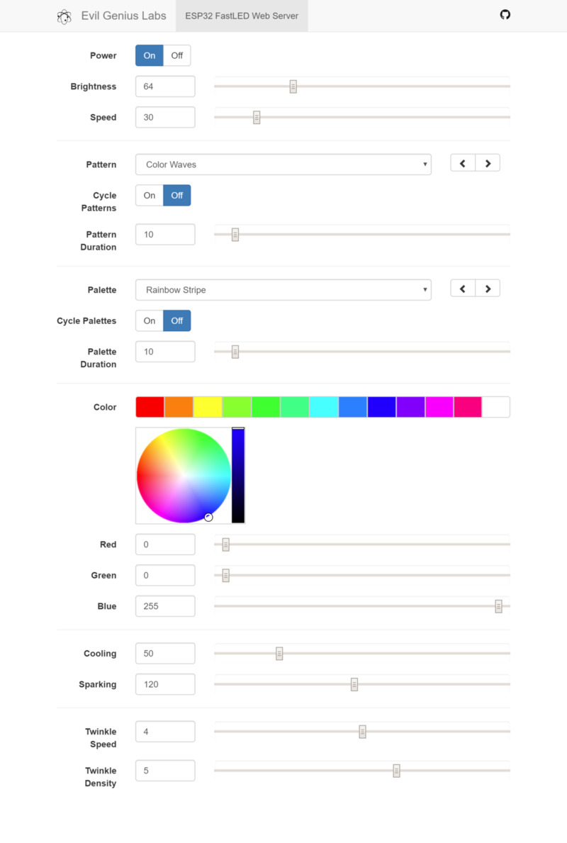 Open source example firmware and web application: https://github.com/jasoncoon/esp32-fastled-webserver
