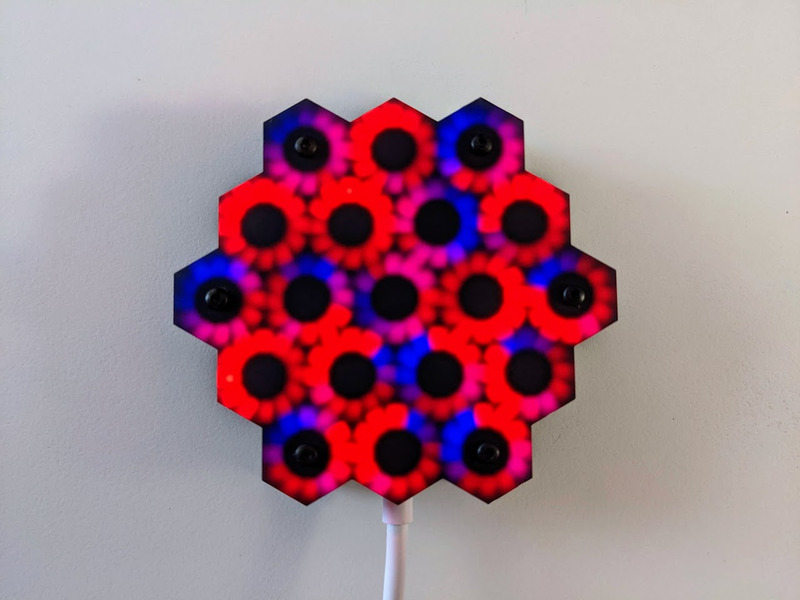 CycloHex is a beautiful set of hexagonally-nested rings with 228 RGB LEDs, six touch pads, and mounting pads for an Adafruit QT Py SAMD21.