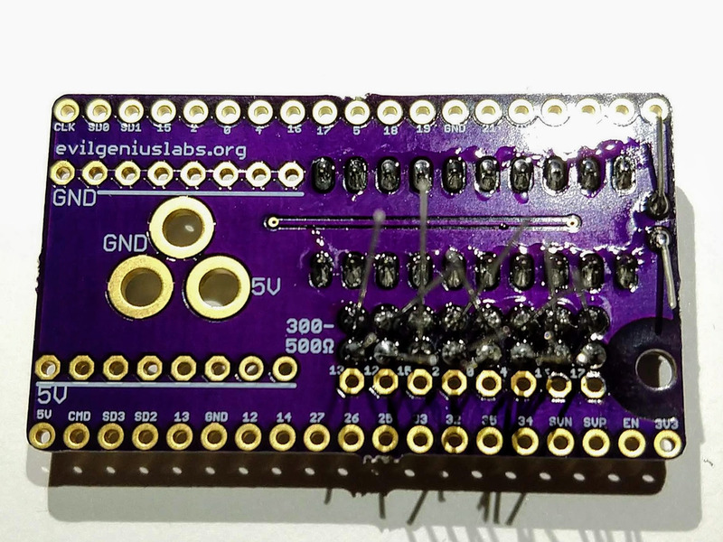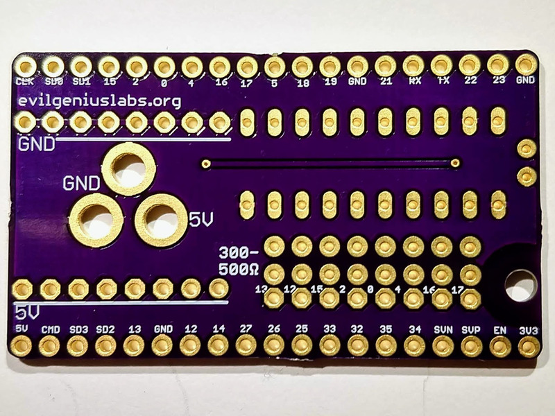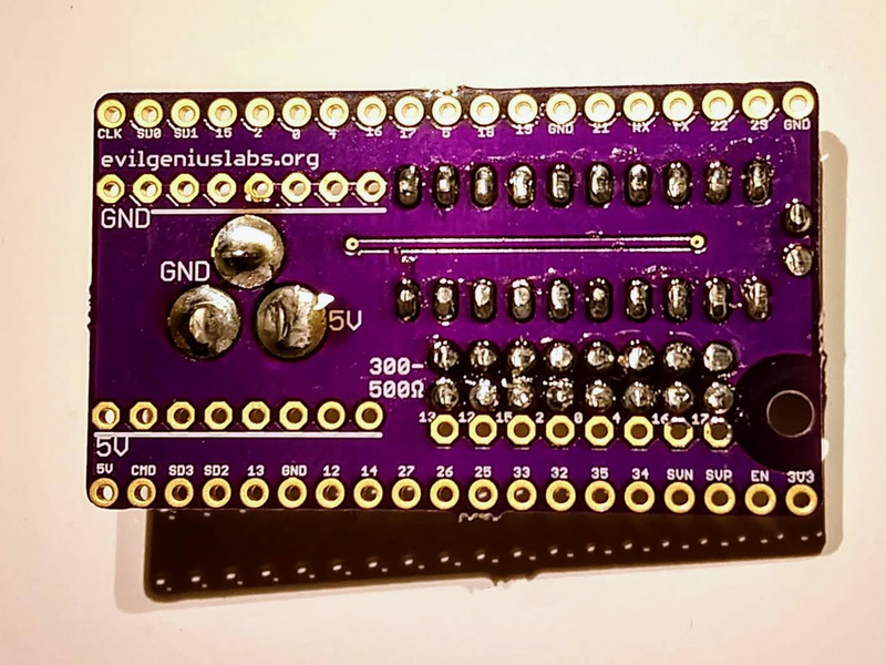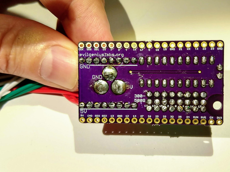 Eight digital output pins (0, 2, 4, 12, 13, 15, 16, 17) are run through the level shifter. It supports parallel output, thanks to Sam Guyer’s excellent work on FastLED ESP32 support.