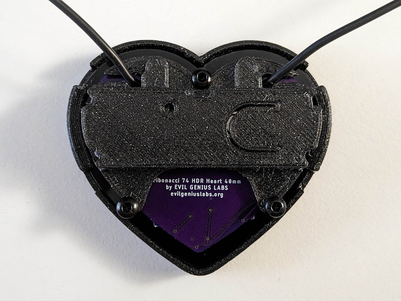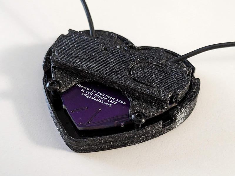 Fibonacci HDR Heart is a tiny, beautiful 42mm heart-shaped disc with 74 SK9822-EC20 HDR RGB LEDs surface mounted in a Fibonacci distribution. Swirling and pulsing like a miniature galaxy, it’s mesmerizing to watch.
