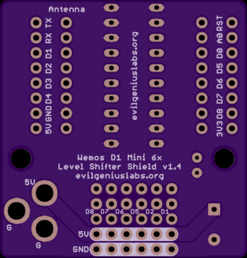 Decide whether you’re going to use female headers, stacking female headers, or if you’re going to solder the Wemos directly to the level shifter shield PCB. I used single female headers so the Wemos would be removable, but still fairly low profile.