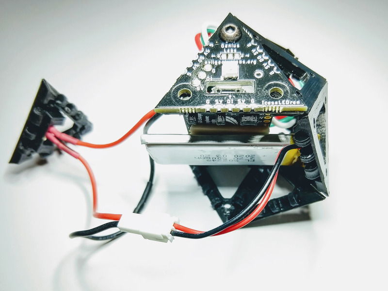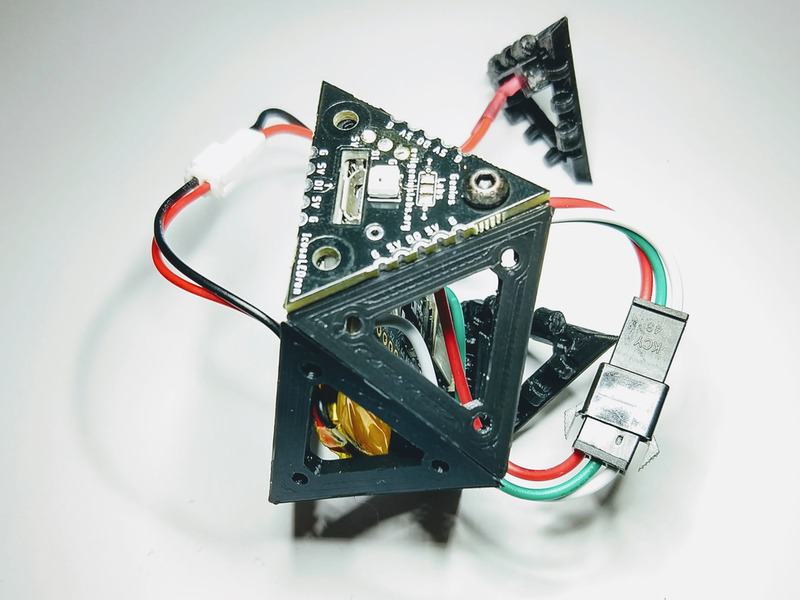 Place the second triangle PCB onto the face to the left of the first PCB, with the DI pad on the second PCB aligned with the DO pin on the first. Secure it in place with M3 screws.