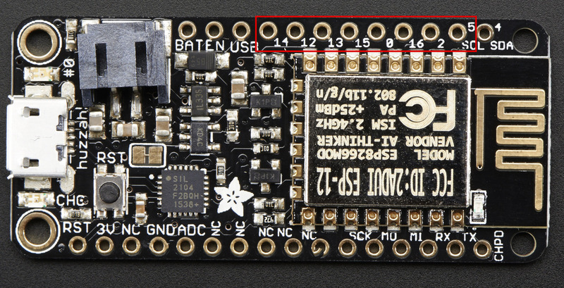 ESP8266 Pins 14, 12, 13, 15, 0, 16, 2, 5 (SCL)