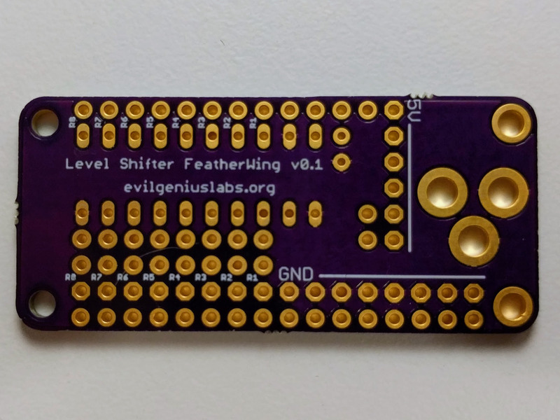 Eight digital output pins (12, 13, 14, 15, 27, 32, 33, SCL) are run through the level shifter.
