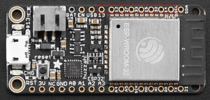 ESP32 Pins 13, 12, 27, 33, 15, 32, 14, SCL