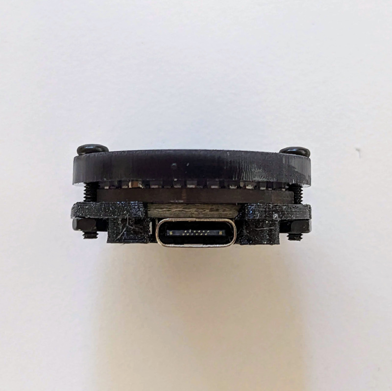 Use M2x4mm screws, inserted from the back, threaded through the back cover, through the LED PCB, and into the front. This option will only let you use the touch points from the back.