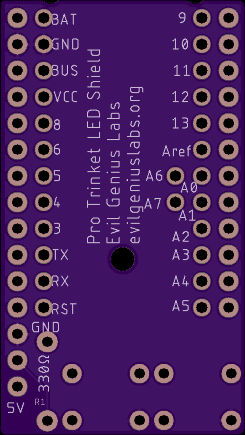 This is a shield/breakout for Adafruit Pro Trinket - 5V that makes it easy to control addressable RGB LEDs, such as WS2811, WS2812 (Adafruit NeoPixels), SK6812, etc. The Adafruit Pro Trinket - 5V is an excellent Arduino compatible development board based on the ATmega328.
